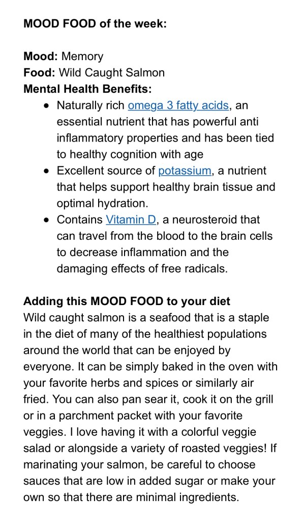 Dr Uma’s Mood Food – wild caught salmon Posted byChilly BellaJanuary 15, 2023January 15, 2023Posted inDr Uma, Expert Newsletter, find a healthier you, Food for thoughtTags:Dr Uma, Find the Joy, healthy snacks, mental health, mindful eating, nutrition, salmon Extracted from the weekly newsletter Share this: Click to share on X (Opens in new window) X Click to share on Facebook (Opens in new window) Facebook More Click to share on Pinterest (Opens in new window) Pinterest Click to email a link to a friend (Opens in new window) Email Like Loading... Published by Chilly Bella Ambassador for good food, good mood and Fine Art Photographer, with a love for the simple joys and sharing my best life with my beautiful family. View more posts