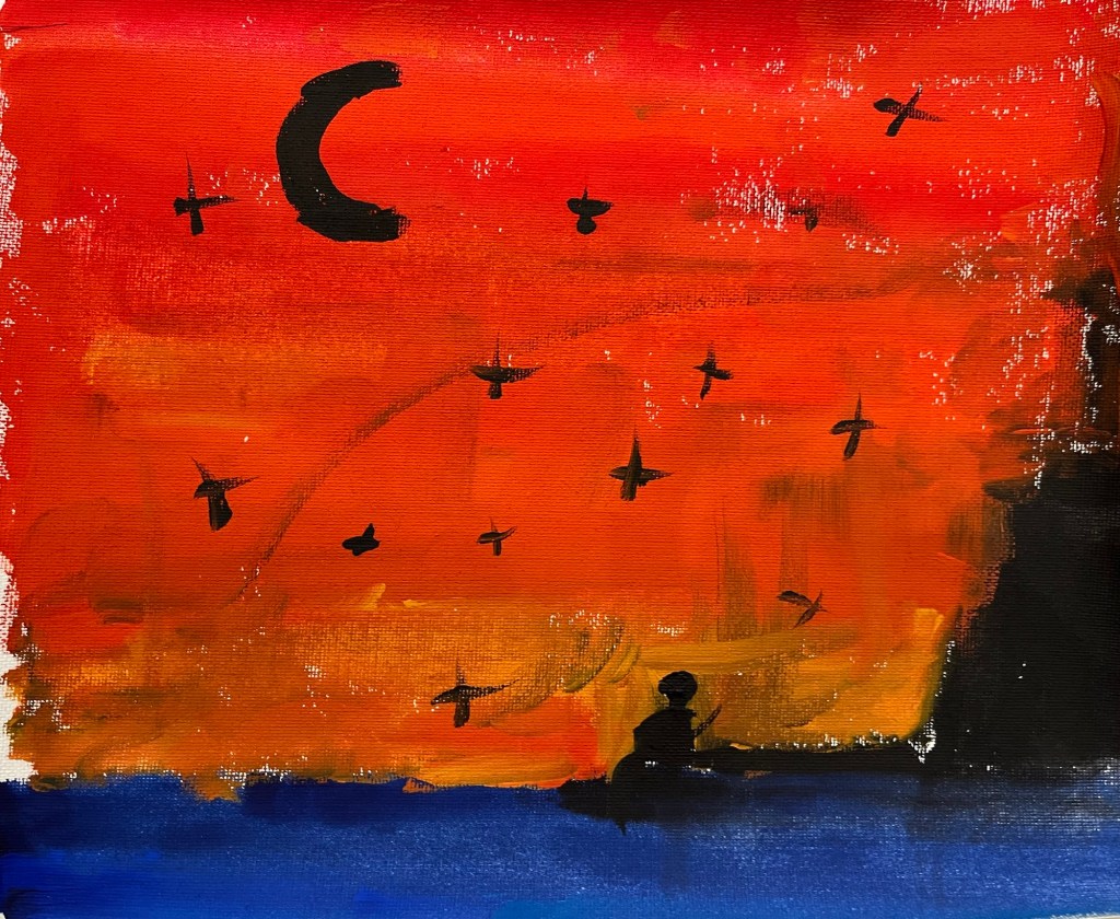 My daughter enjoys sketch and painting. She sat yesterday and painted this.