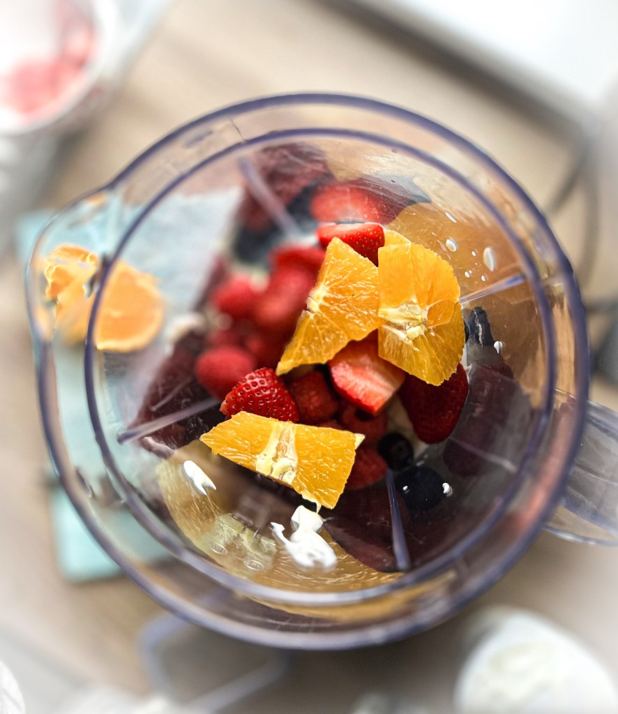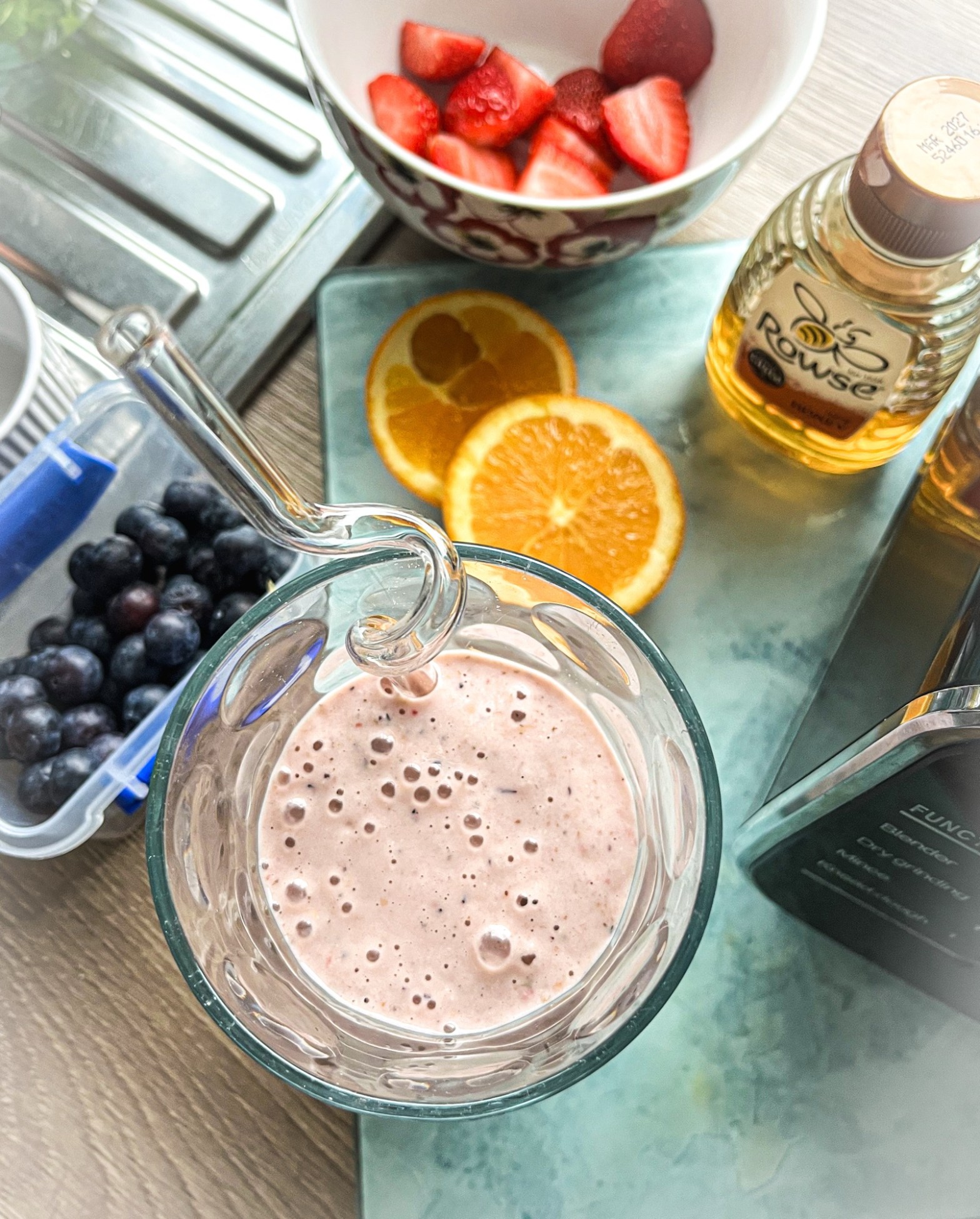 Fresh orange juice adds additional vitamin C and a hint of citrus brightness that pairs beautifully with berries. Vitamin C is essential for collagen production and immune function.