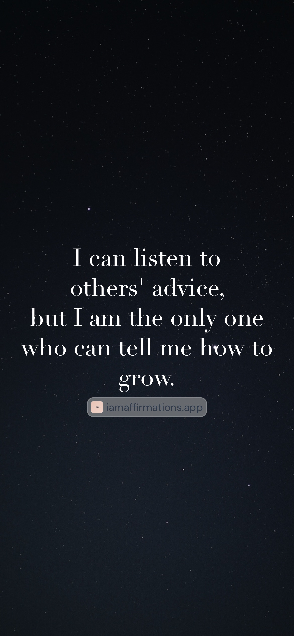 I can listen to others’ advice, but I am the only one who can tell me how to grow.