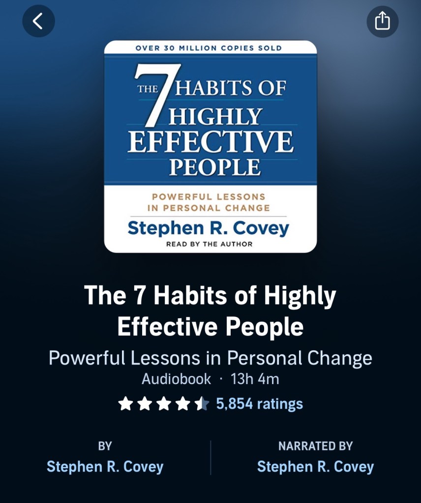 This is a must read book! The 7 habits can be applied to all aspects of life. The idea of been a principle centred person, really resinated with me. I couldn’t recommend this book highly enough!